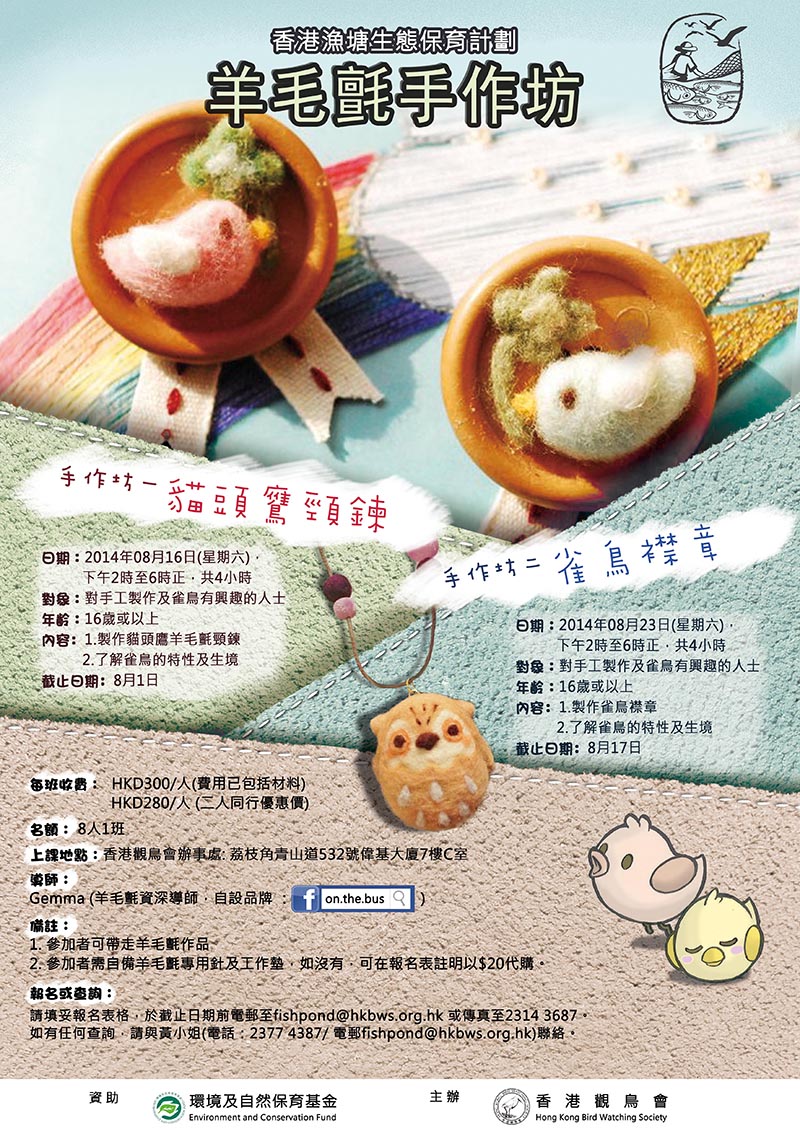 » 羊毛氈!! 貓頭鷹頸鍊 & 雀鳥襟章手作坊