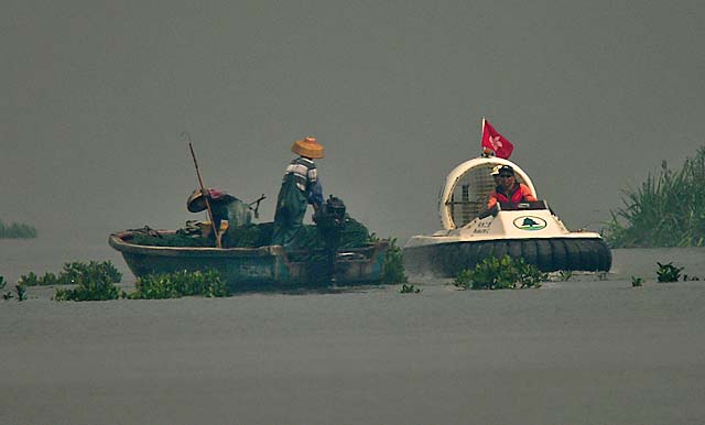 This confrontation happened yesterday (2nd).  The hovercraft crew just waved for the fishermen to leave the area and they started pulling in their nets. Neil.