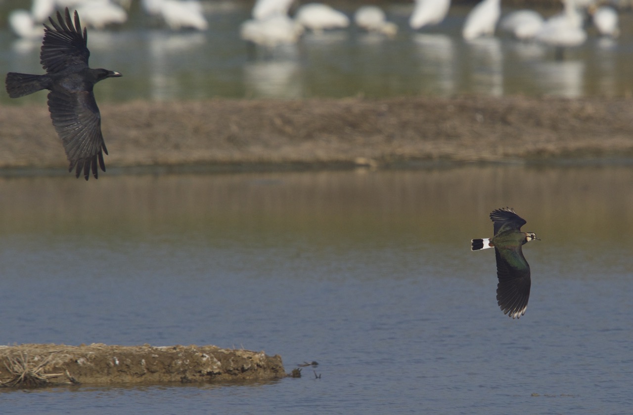 Large -billed Crow chase Northern Lapwing 大嘴鸦追鳳頭麥雞