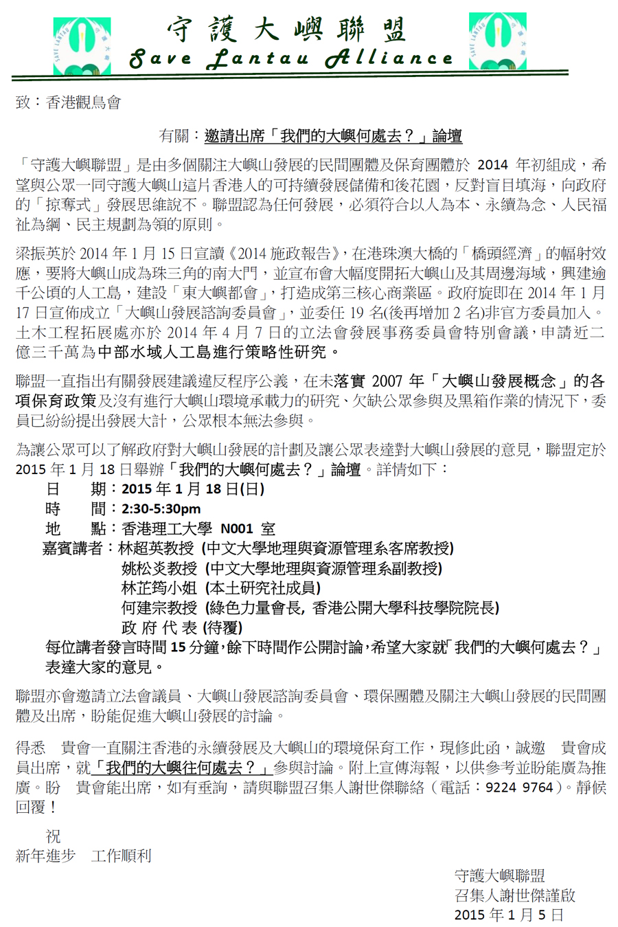 » 「我們的大嶼何處去?」論壇