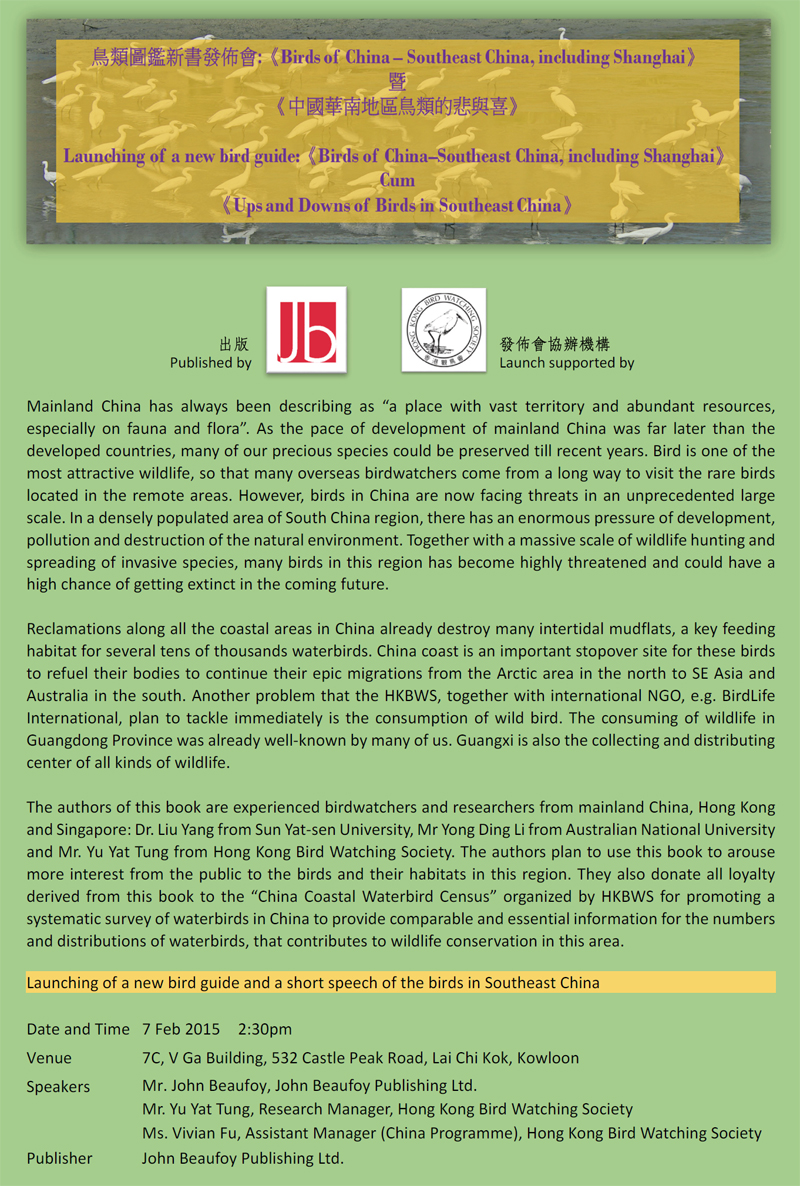 » Launching of a new bird guide & short speech on Birds in Southeast China