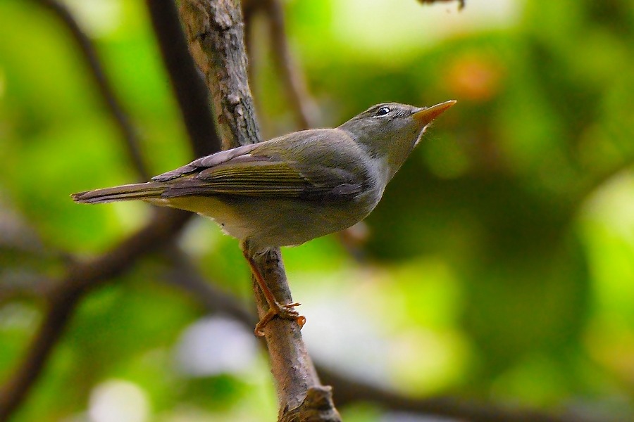 Your photos show very well the features mentioned by Paul Leader above - a superficial resemblance to Eastern Crowned Warbler in the body but a very different head pattern, grey head with no central crown stripe, weak eye-stripe and thin supercilium, also the white eye-ring and pinkish lower mandible in your third photo.