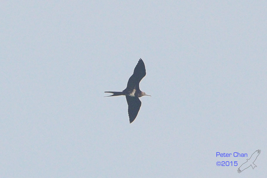 I clicked this photo on last Monday (27/07/2015) in Sai Kung Pier. The Lesser Frigatebird was flying together with the Black Kites over Yeung Chau. Though far away, hope it can help comparing the sizes.