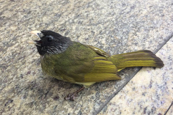 食晏行過見到佢跌左喺地下,郁都唔郁。因為附近喺玻璃幕牆大廈,估計好有可能係撞玻璃。驚佢比人踩到,於是用紙巾執起佢放入草叢,好采隔咗一陣佢識得自己飛上樹。希望冇大礙啦!
