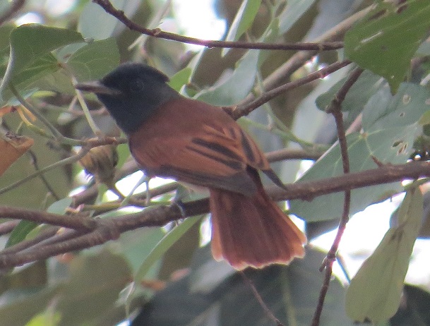 Hard to judge it size on photo, but I believe this is an Oriental Reed Warbler.
