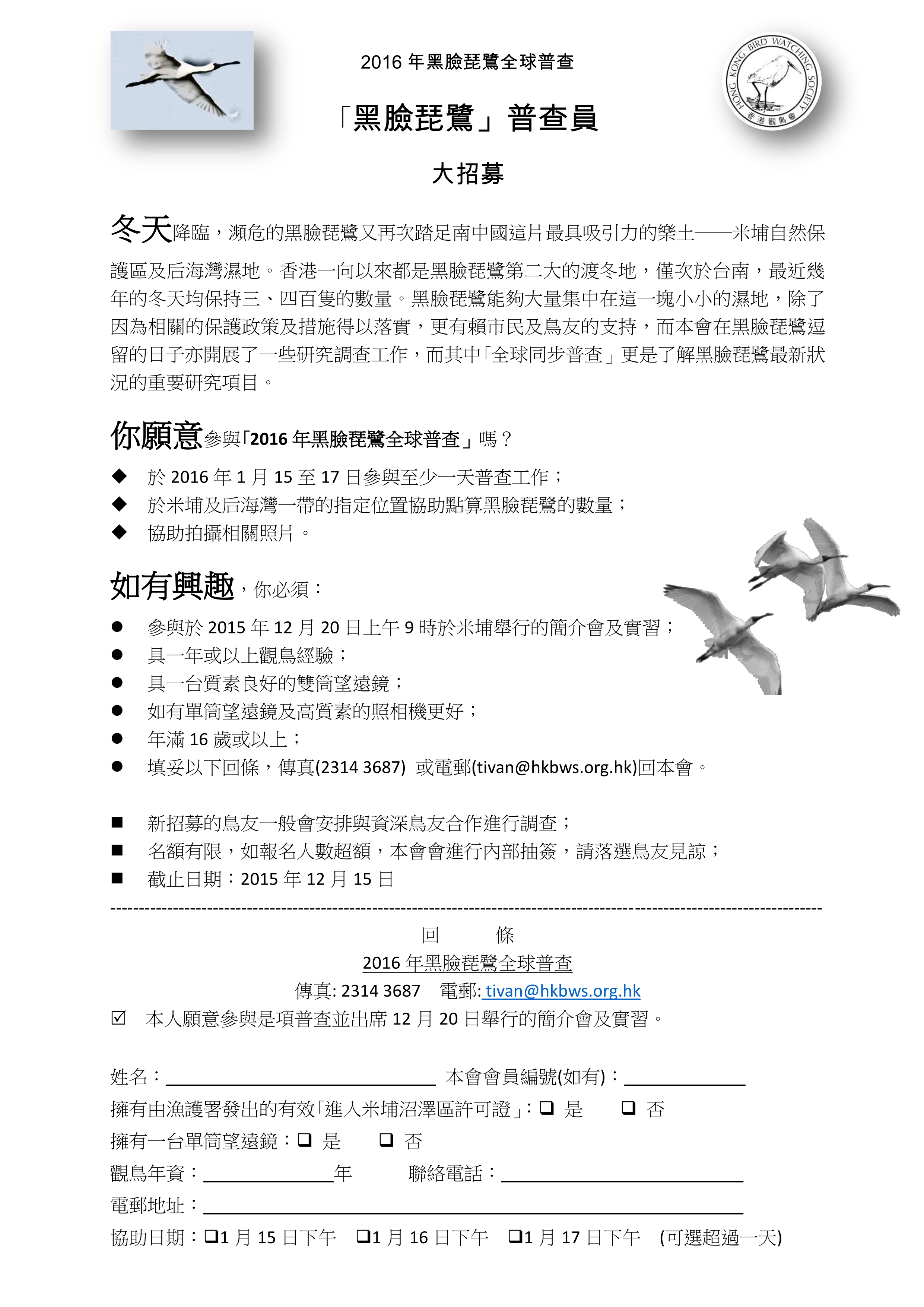 2016年黑臉琵鷺全球普查 - 普查員大招募