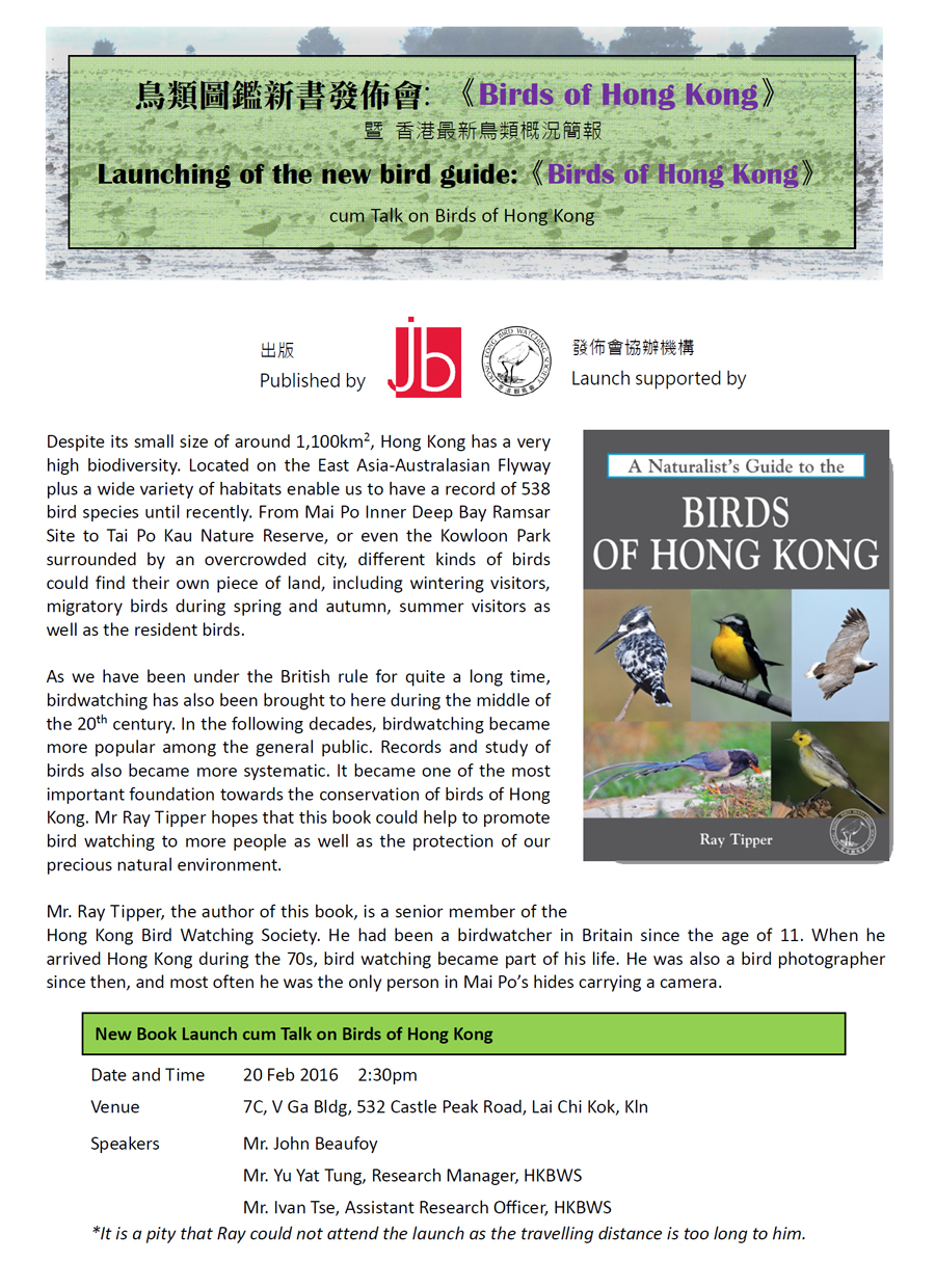 » Book Launch:《Birds of Hong Kong》cum Talk on Birds of Hong Kong