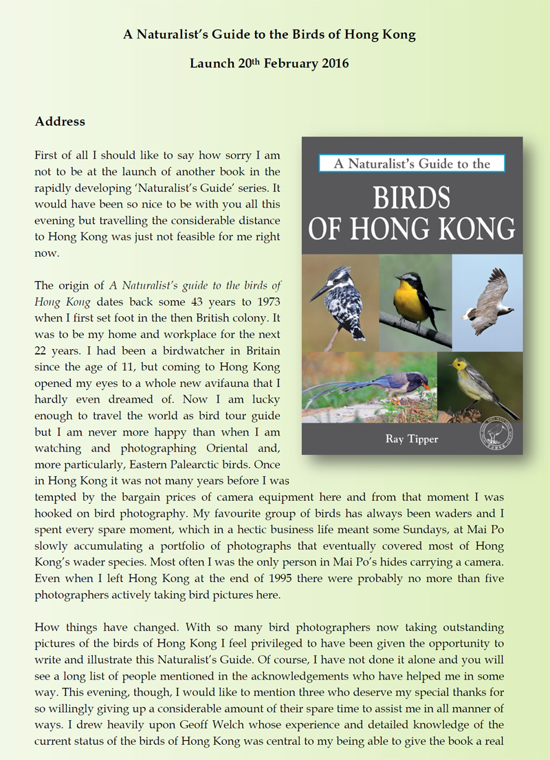 Book Launch:《Birds of Hong Kong》cum Talk on Birds of Hong Kong
