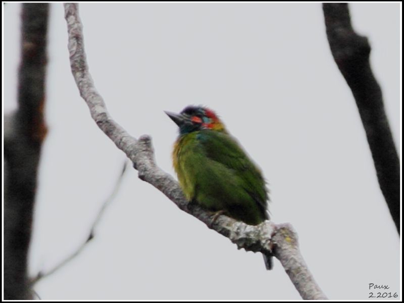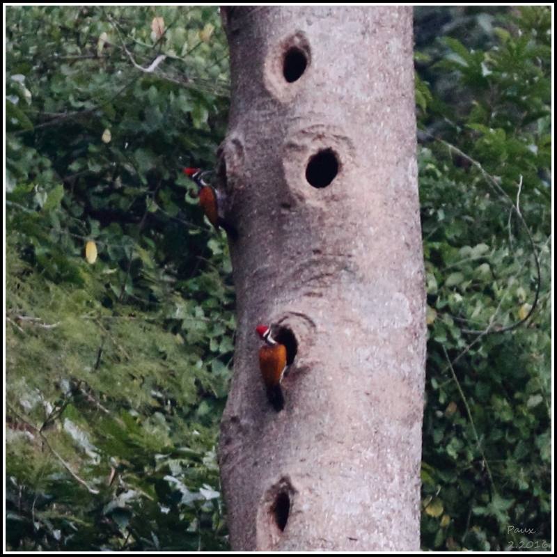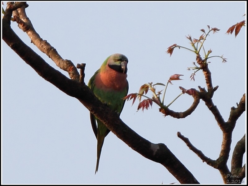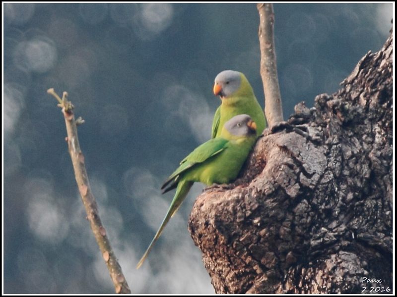 At dusk,this flock of Blossom-headed Parakeet came back to roost on the tree while the Red-breasted Parakeet always joined them.