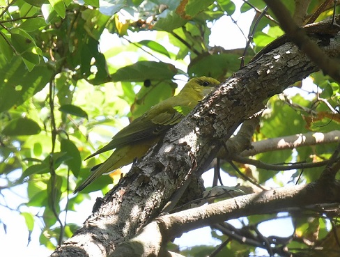A Dollarbird and at least seven Black-naped Orioles were in the tall trees at the Lower School.