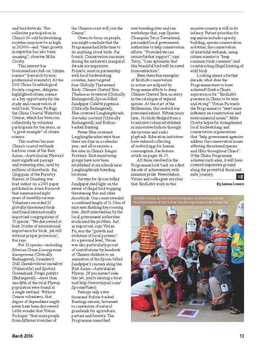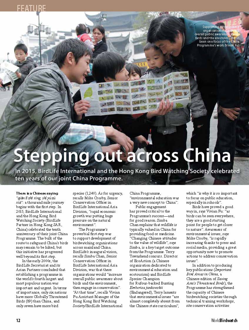 » article about China Programme in World Birdwatch Magazine