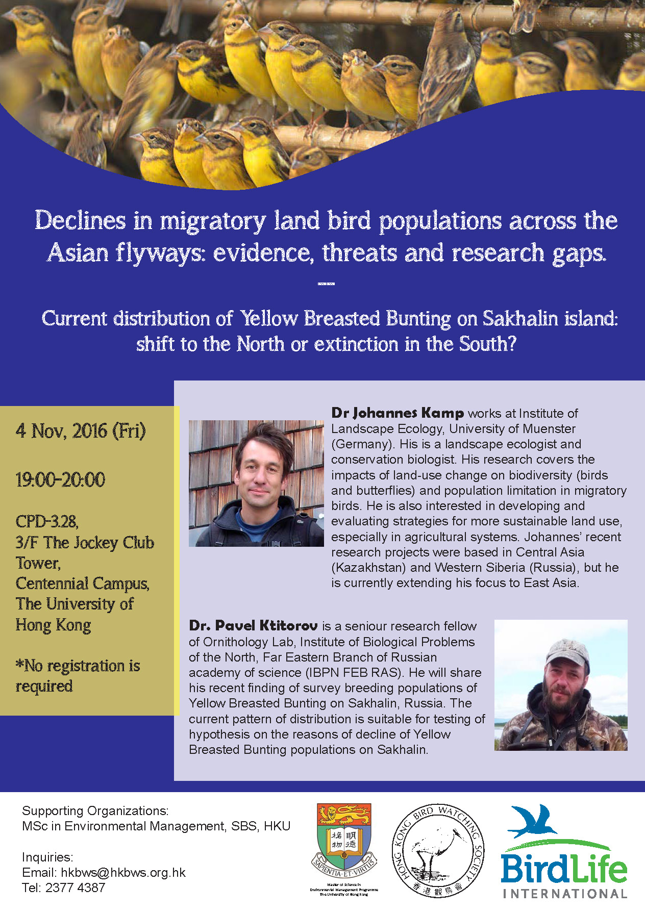 Seminar: Declines in migratory land bird populations across the Asian flyways: evidence, threats and research gaps.