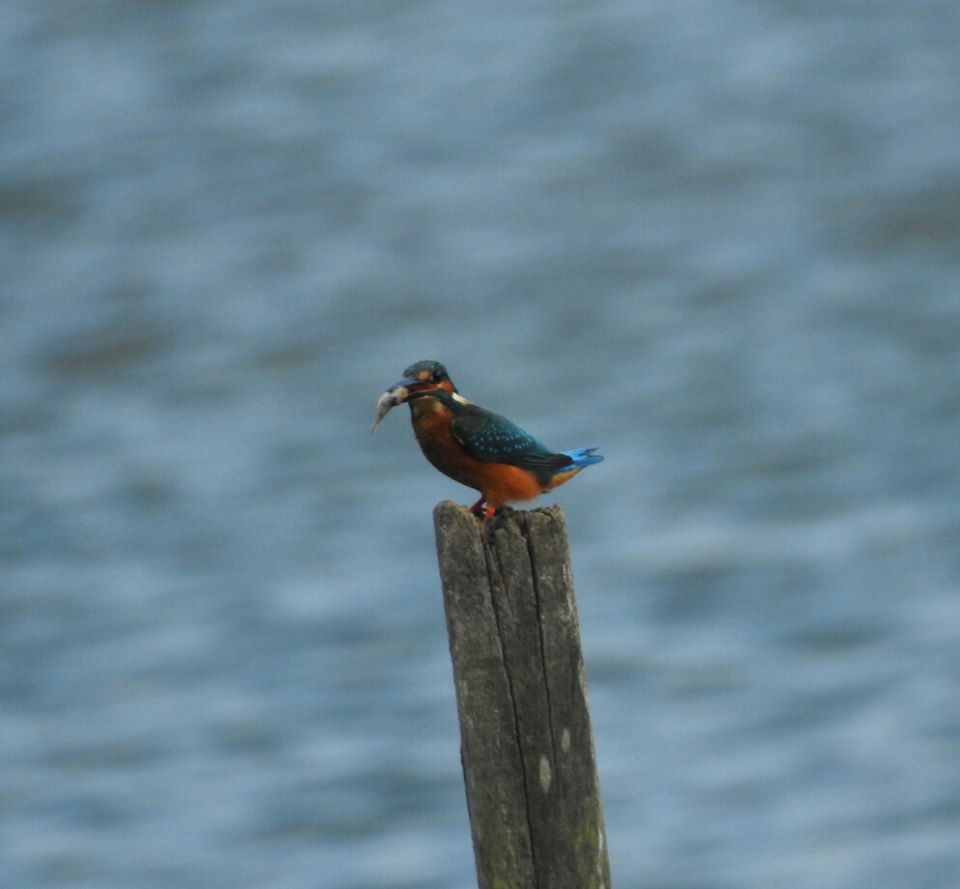 Amazing! Common Kingfisher with fish looking at me, just after it plunged into the water!