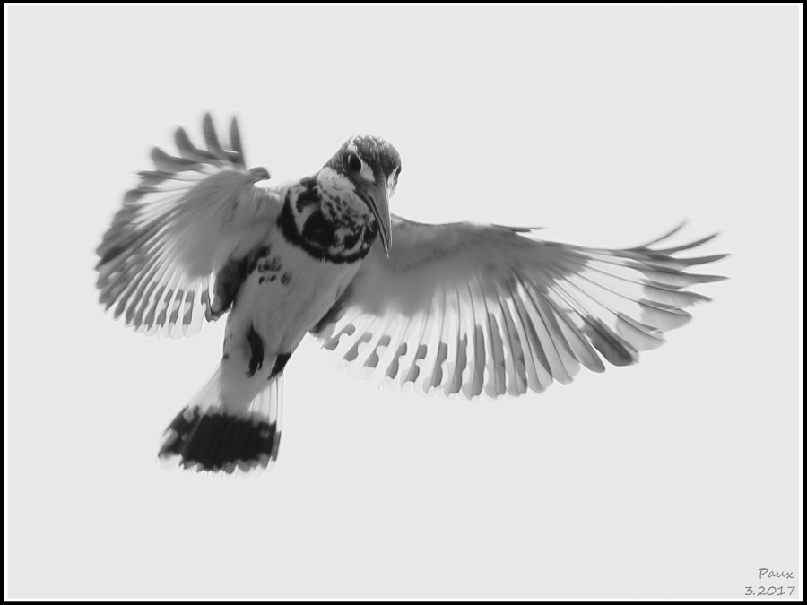 Pied Kingfisher 斑魚狗 (B&W photo)