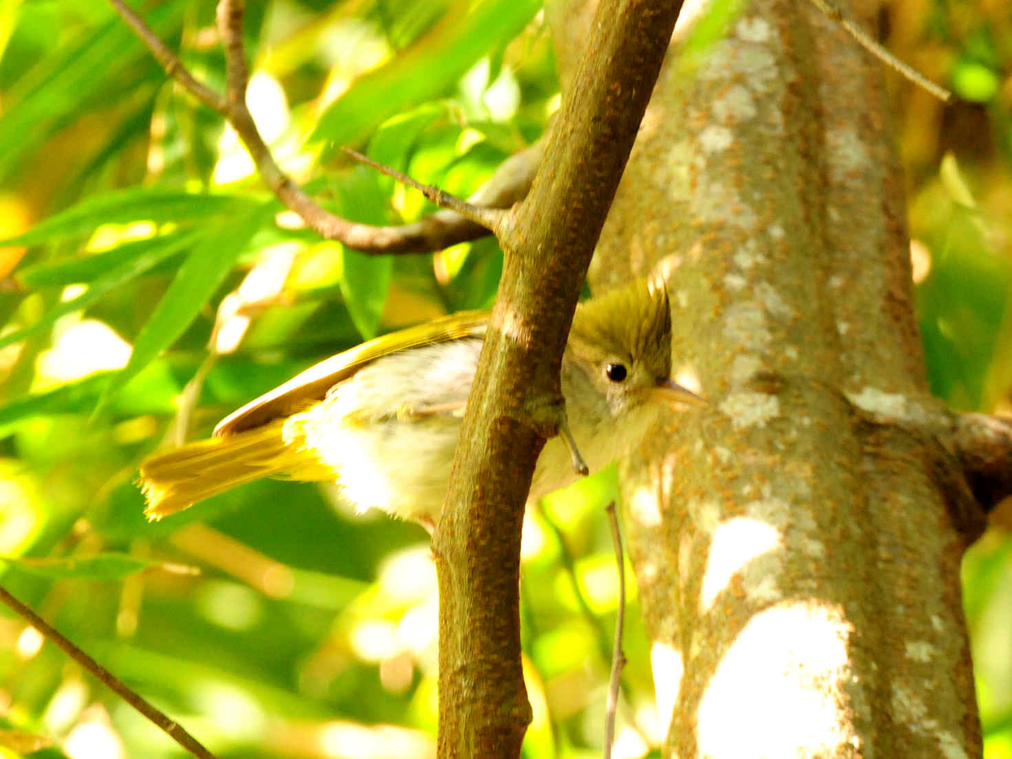 I think they're both White-bellied Erpornis, but the angle on the first is unusual and it seems to have the crest lowered.
