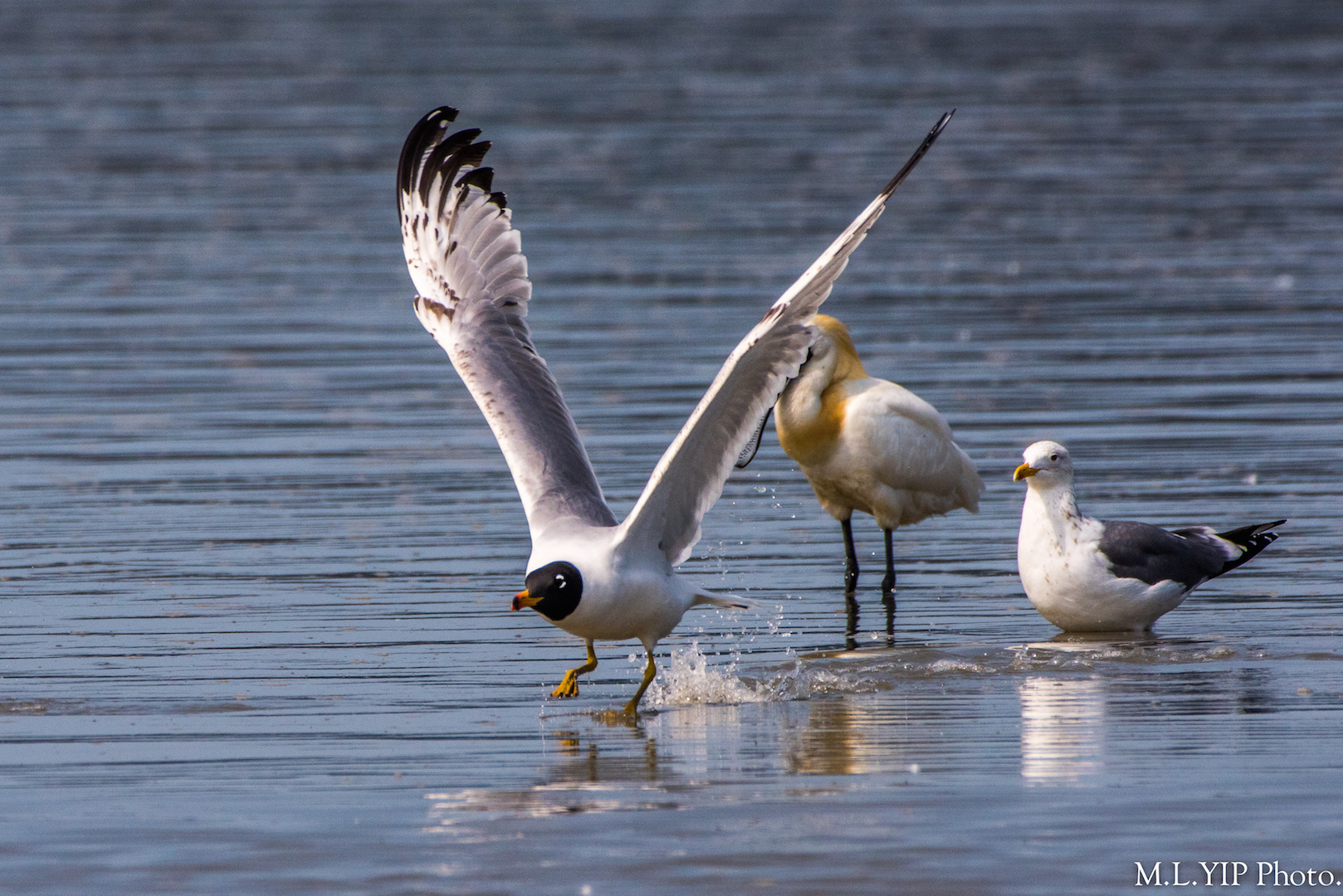 這隻體型龐大的漁鷗,體重也不輕,起飛時也是頗費力氣·
