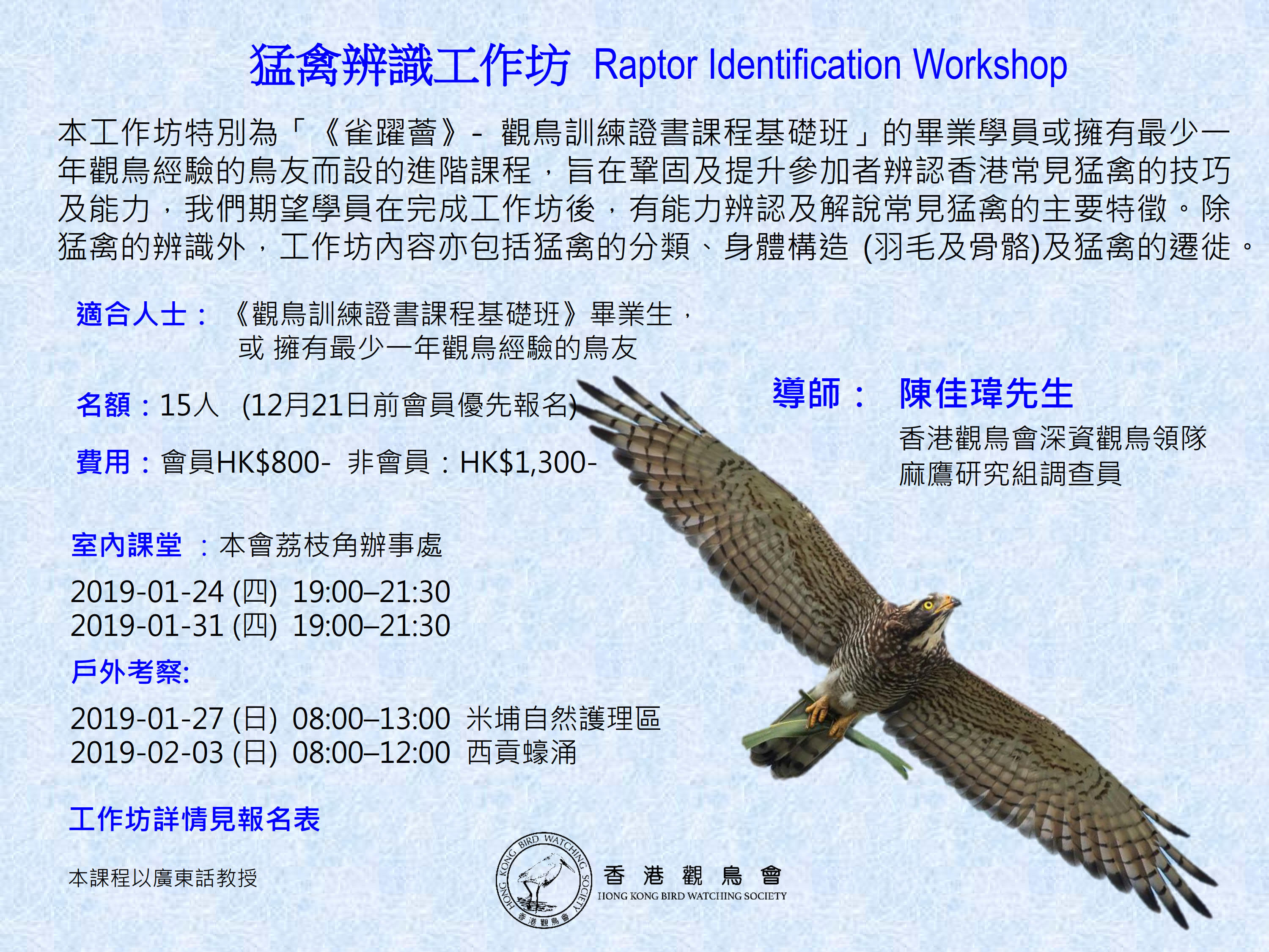 » (Full 滿額) 猛禽辨識工作坊 2019-01 Raptor Identification Workshop