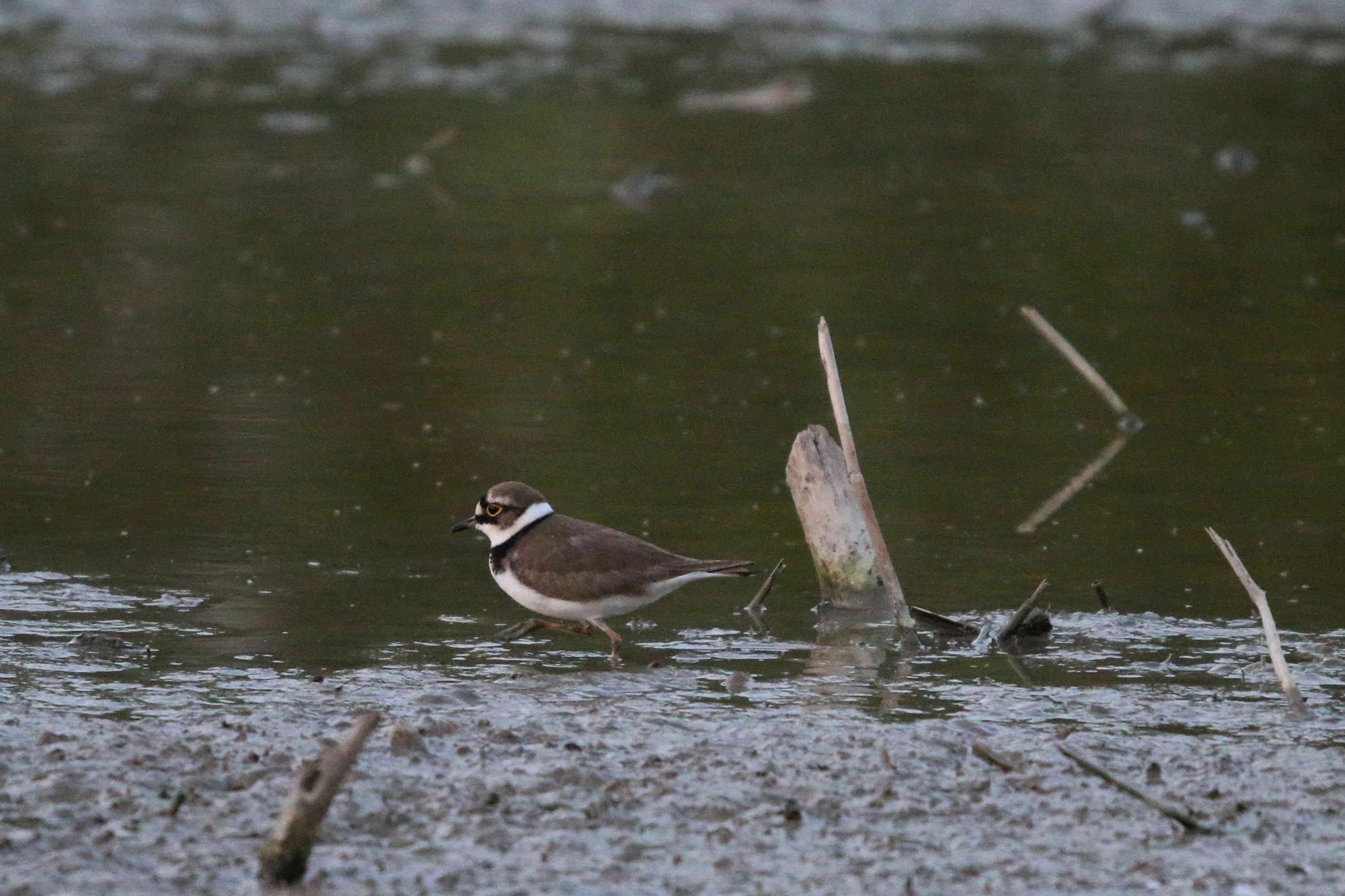 It's a Little Ringed Plover. The yellow eye-ring is distinctive.