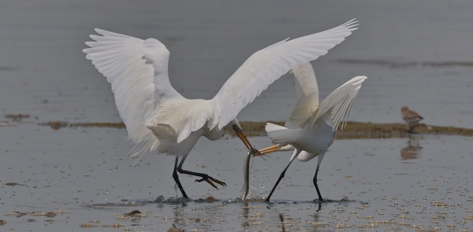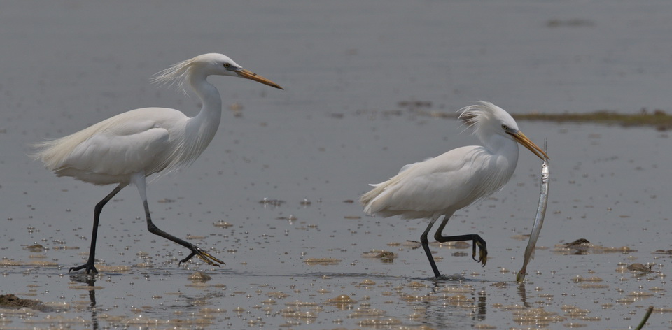 Swinhoe's Egrets (4 of them) today 2020-04-30 at Mai Po.