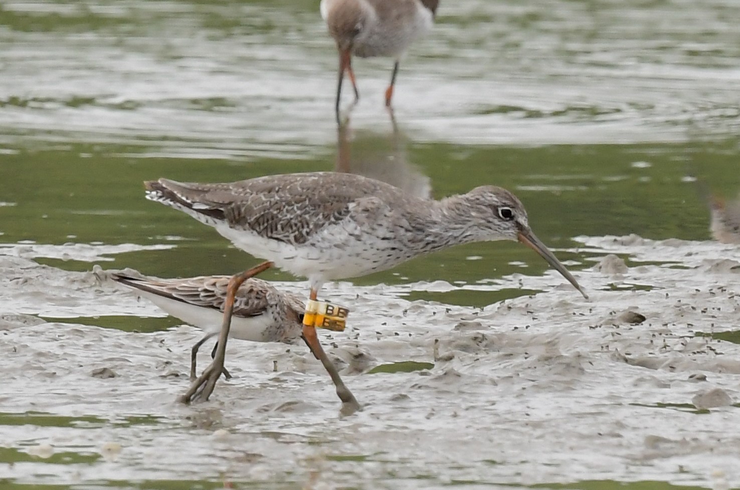 Common Redshank BE was ringed on 20-Sep-2020. It has been frequently reported from the boardwalk, this is the 14th sighting.