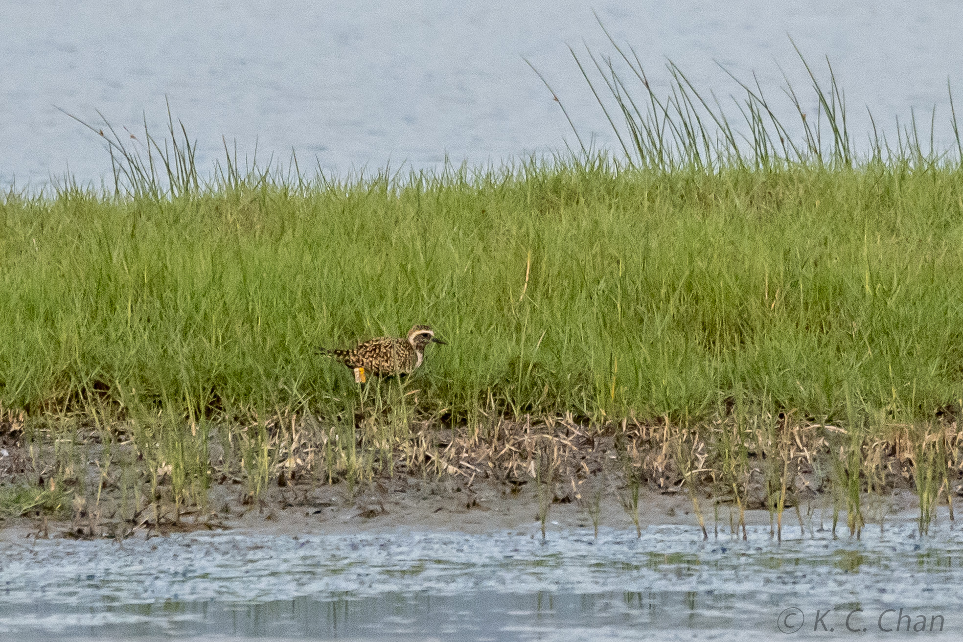 This is Pacific Golden Plover D8 ringed on 20-Sep-20. Our team made a mistake putting the yellow colour flag on top. It has been reported from Shenzhen many times in Oct-Nov; recorded at Mai Po in Feb and Mar.