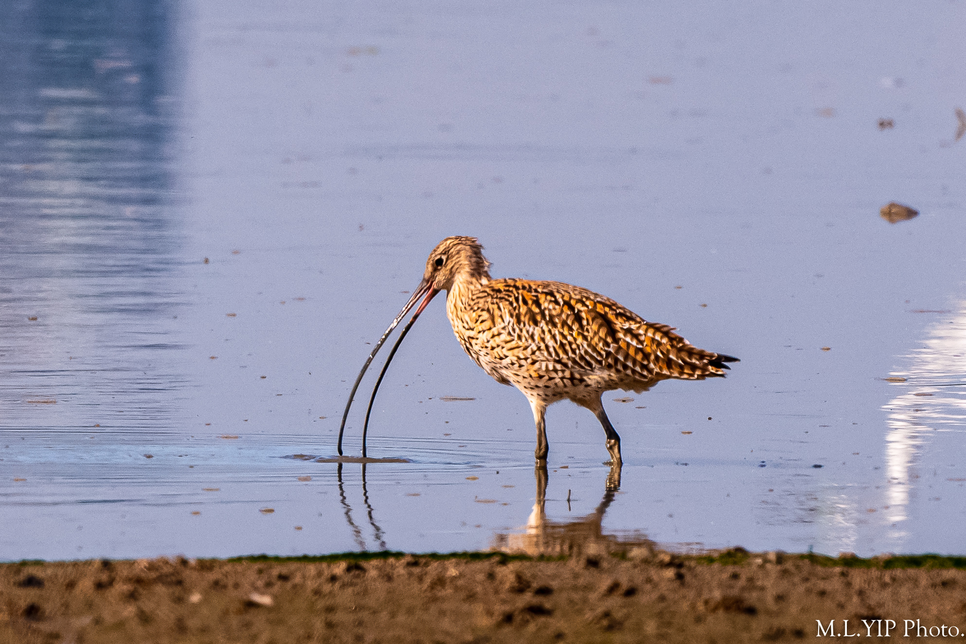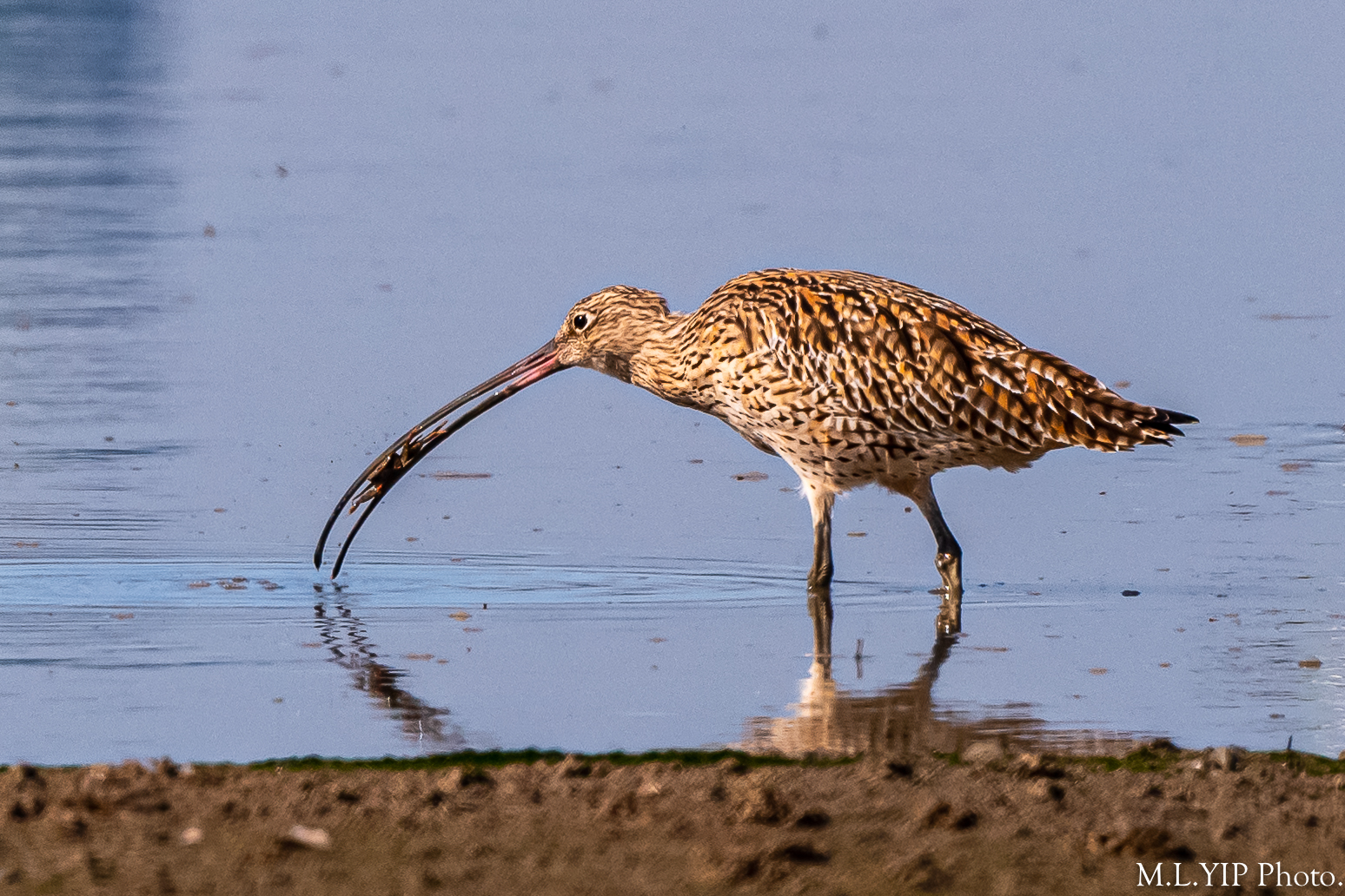 大杓鷸擁有長長嘴巴,可以掘到深處來找獵物,可是進食的時候,就要花點功夫.