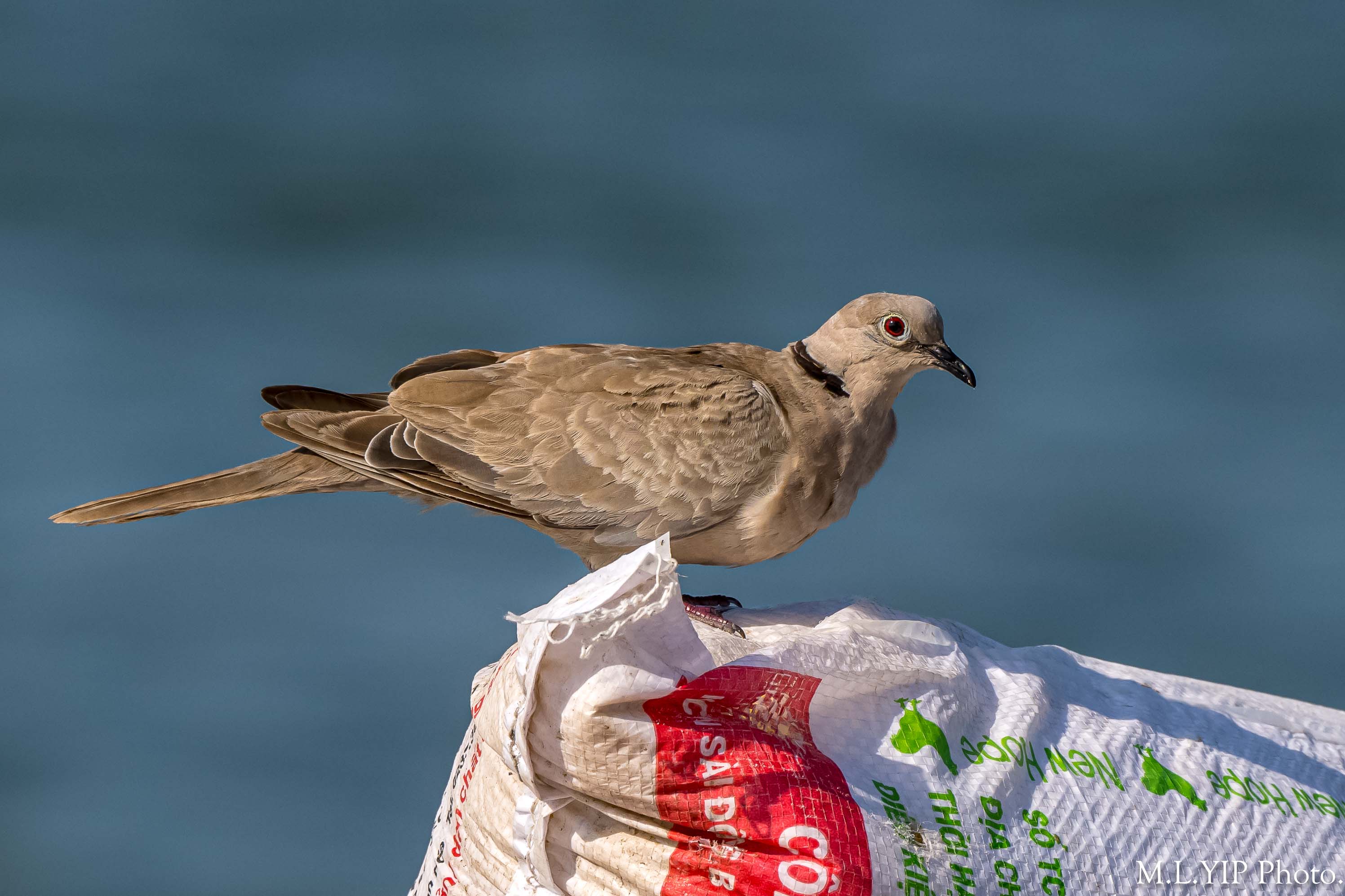 原來灰斑鳩對魚糧也感興趣,怪不得在大生圍,常見到它的縱影.