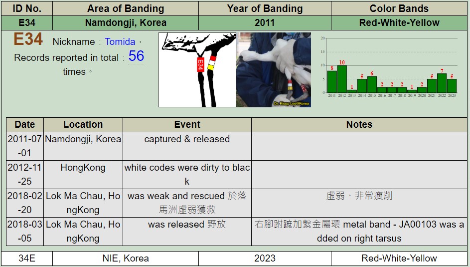 And it is one of the most frequently sighted ringed individuals in Hong Kong.
