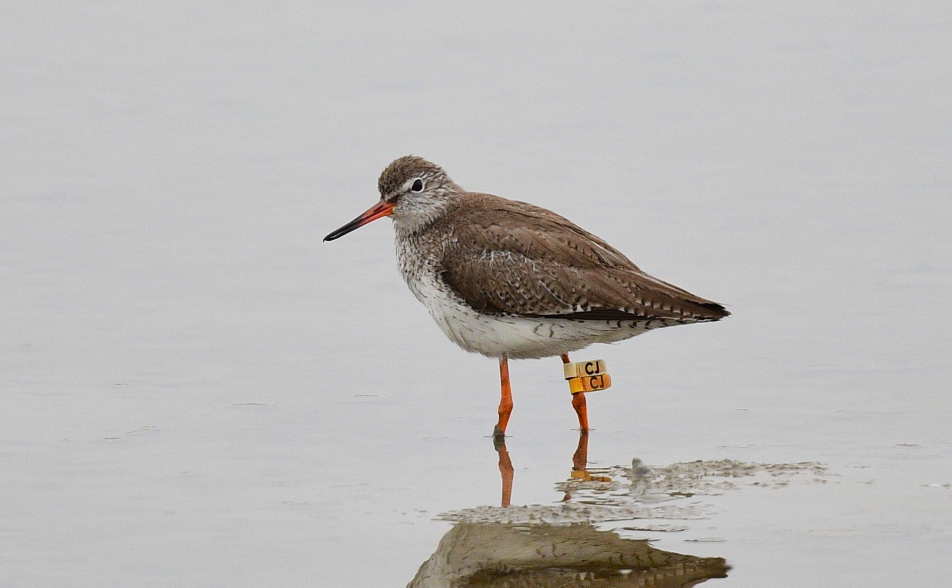 Common Redshank CJ was ringed on 14-Nov-2020. Twelve sightings from Mai Po and Shenzhen: Oct-Nov 21, Feb-Apr 22, Feb-Apr 23, Oct-Nov 23