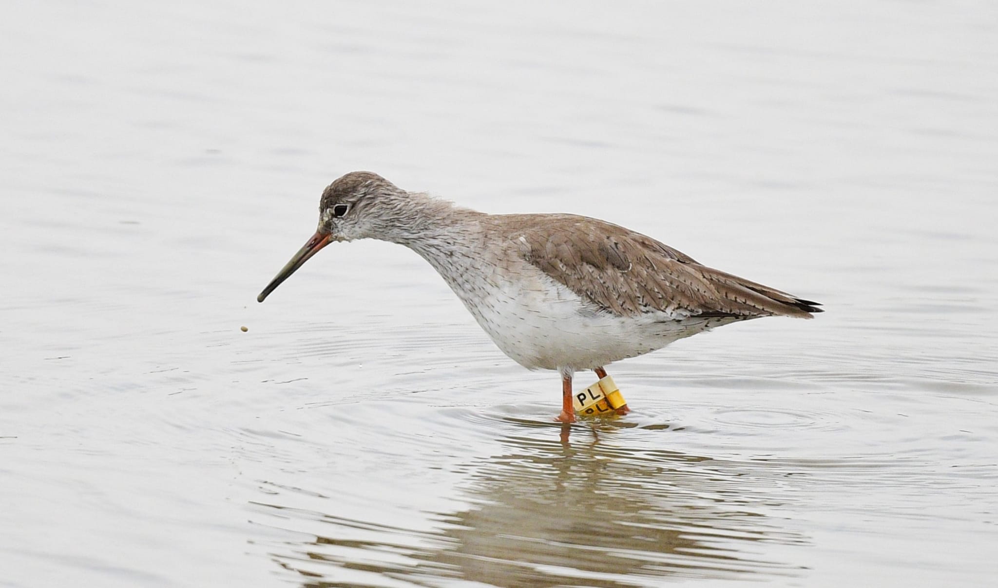 Common Redshank PL was ringed on 2-Sep-2022. Eight sightings from Mai Po: Sep-Oct 22, Apr-23, Nov-Dec 23