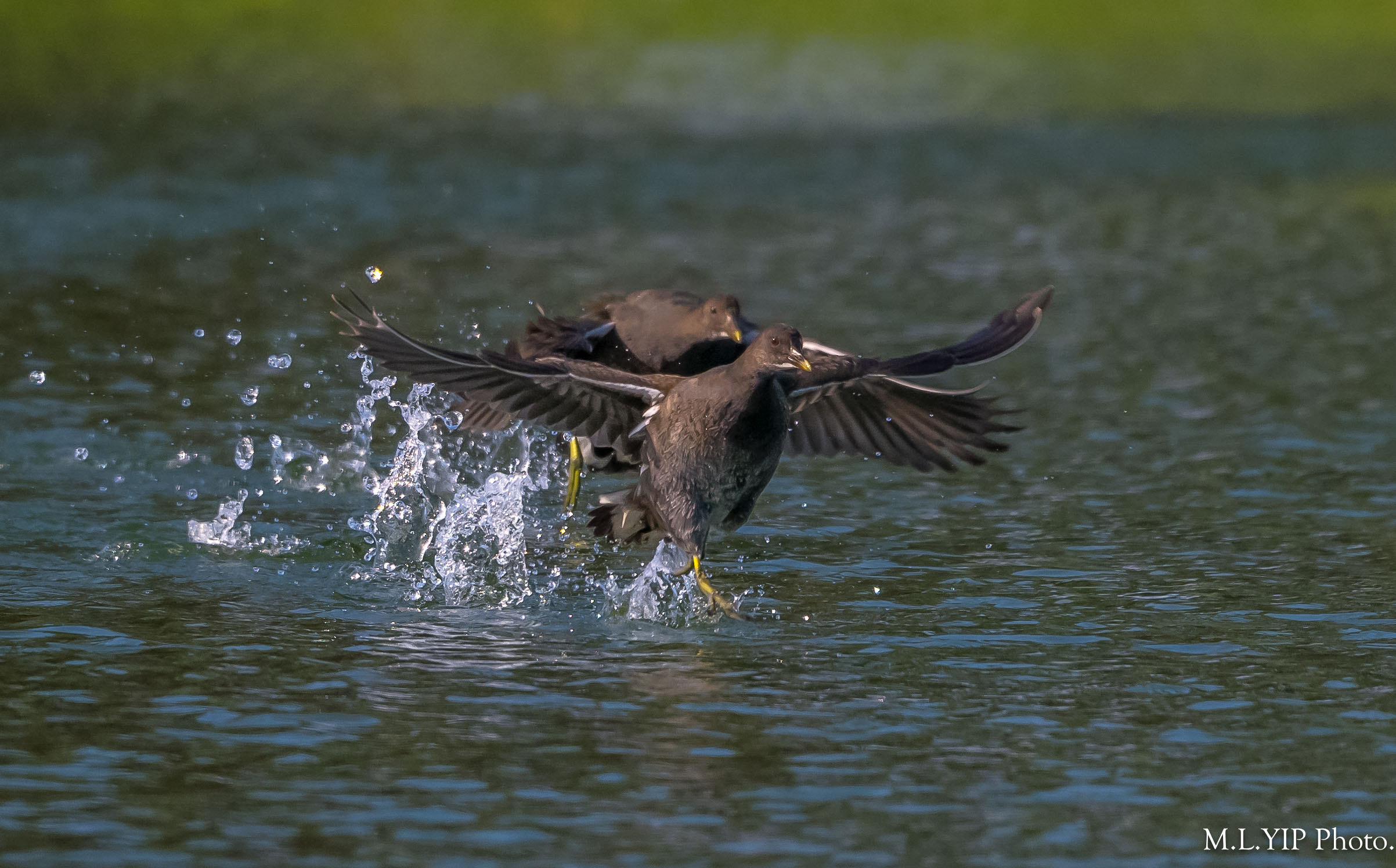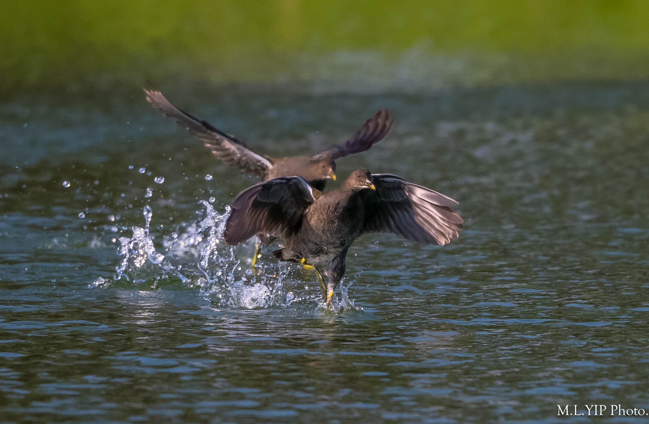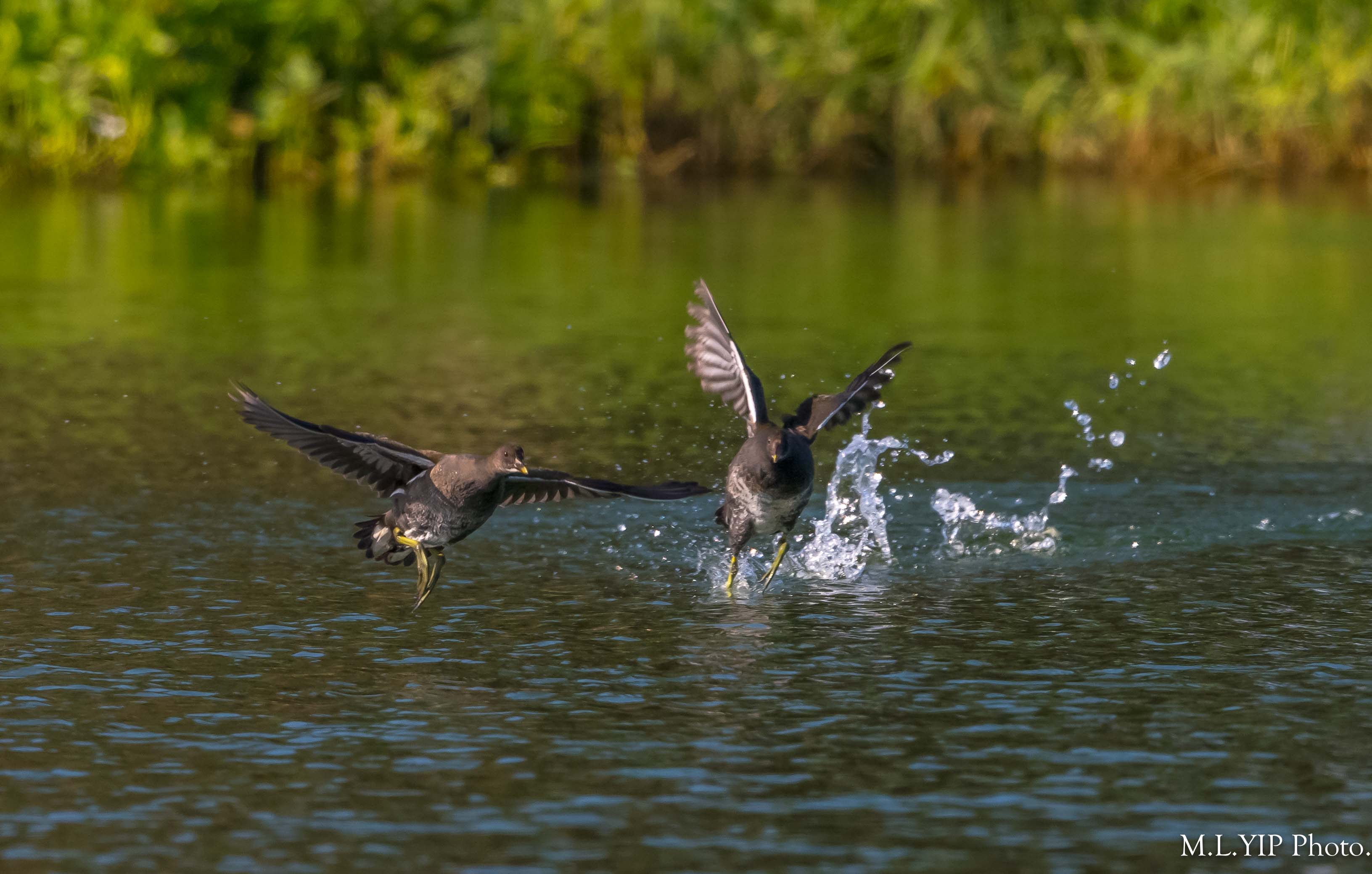 兩隻黑水鷄幼鳥在追追逐逐.