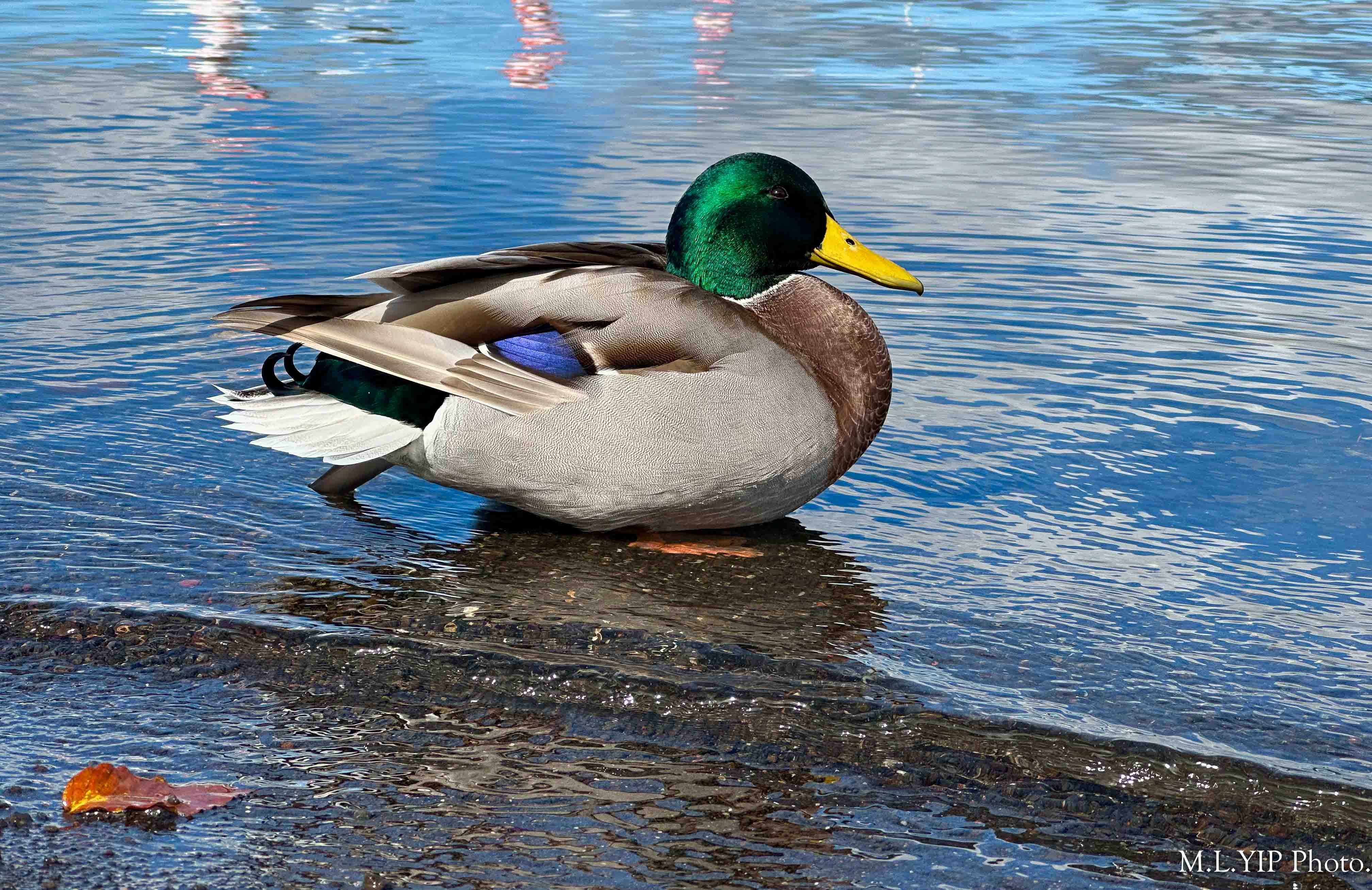 這隻在湖畔的綠頭鴨,似乎全不怕人,我走近用手機來拍攝,它都沒有飛走.