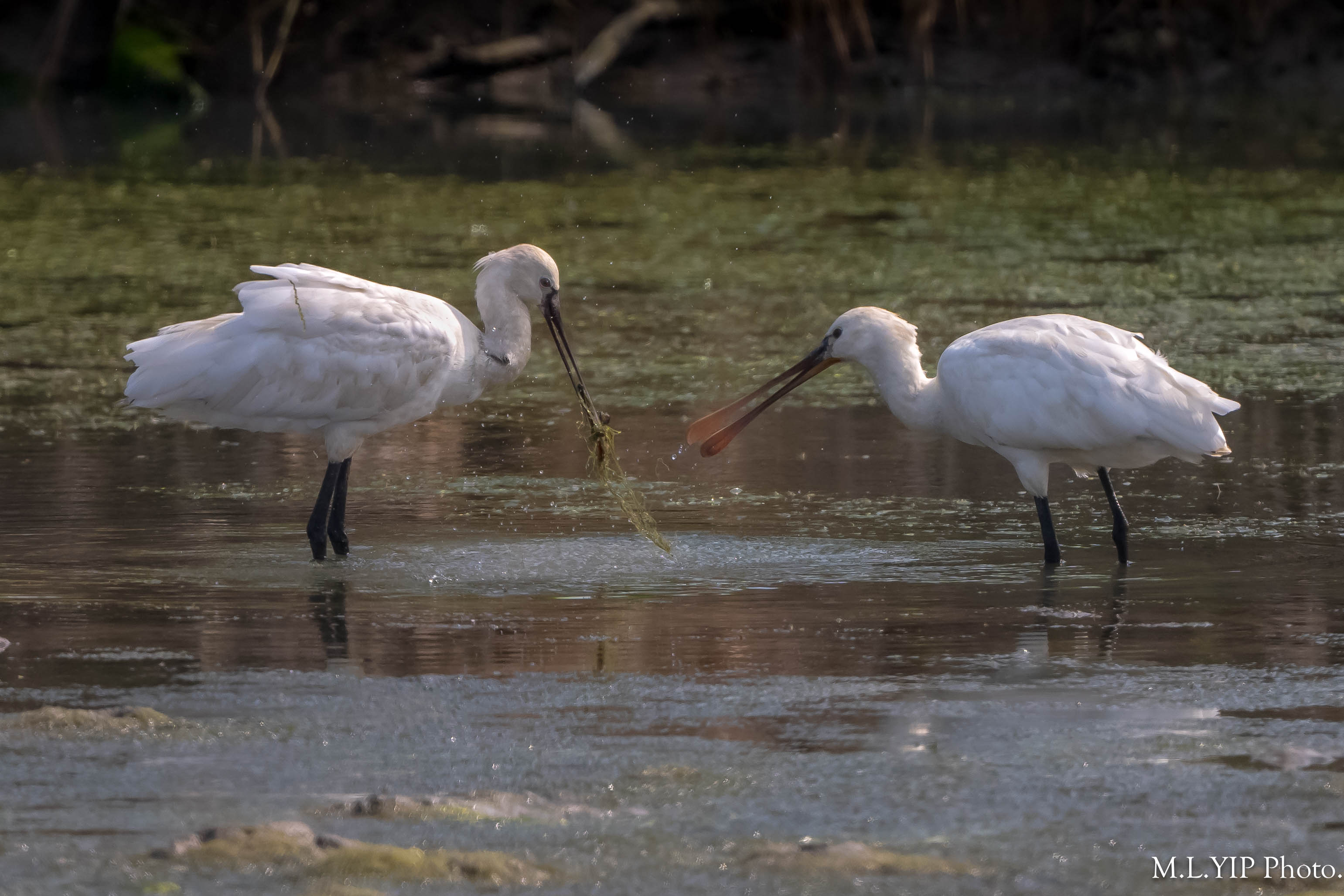 兩隻白琵鷺,唔知係咪討論緊呢個問題.