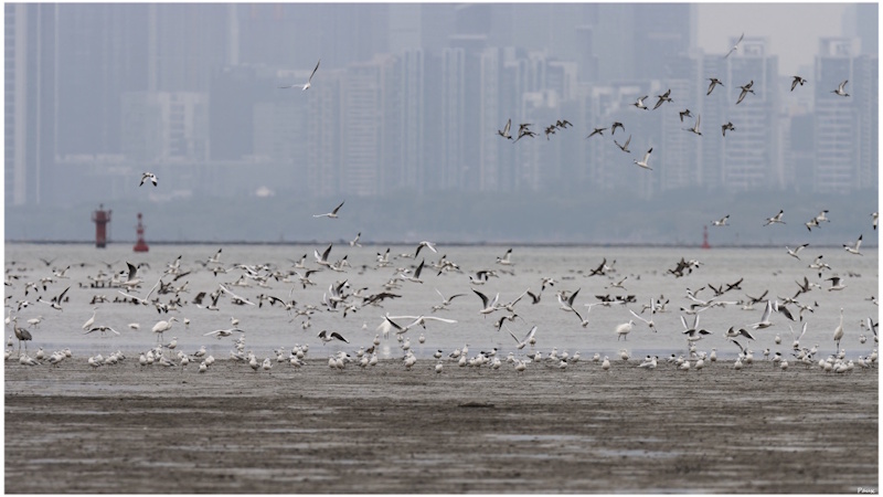 米埔泥灘上的紅嘴鷗/黑嘴鷗