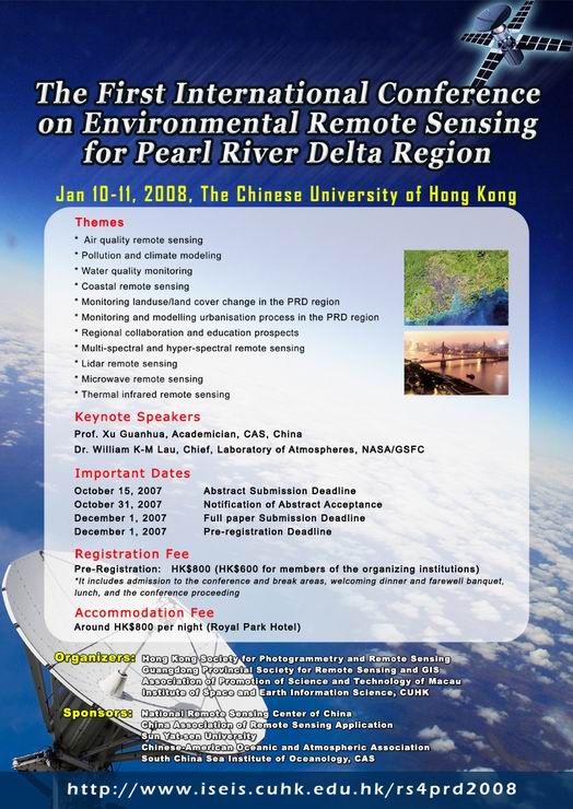 International Conference on Environmental Remote Sensing for Pearl River Delta Region 10-11 Jan 2008