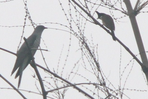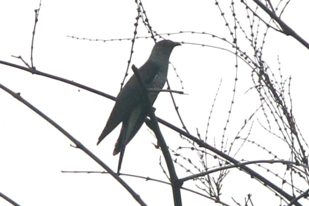 Saw this bird today at Yin Kong (near Long Valley). Initially thought it looked a different than an Indian Cuckoo--greyer than I expect for Indian Cuckoo and not brown enough on the back. Now because of the light and indistinct barring on the breast I am wondering if it is an Oriental Cuckoo or Common Cuckoo.
