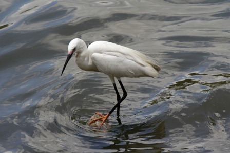 Little Egret. Chinese/Swinhoe's Egret has a yellow bill and shaggy crest in breeding plumage.