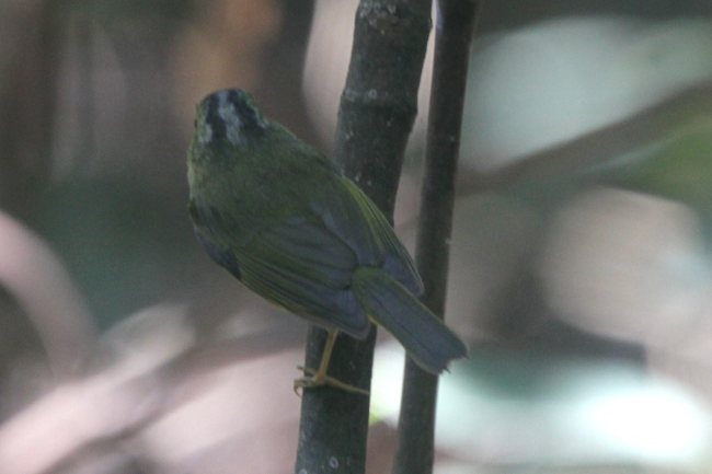 Incidentally after seeing this bird and the bird at Pak Sha O on Saturday, I am almost positive the bird I saw on Hatton Rd at Lung Fu Shan a week was also Seicercus omeiensis due to the complete, thin eyering, extent of grey below the lateral crown stripe, reletively dull underparts and the lack of a wingbar. The only difference I noticed between the bird today and the one at Lung Fu Shan was the amount of white in the tail seemed greater on the LFS bird. Perhaps that was only because the bird had its tail spread while I observed it. Perhaps there is an influx of this species this winter.