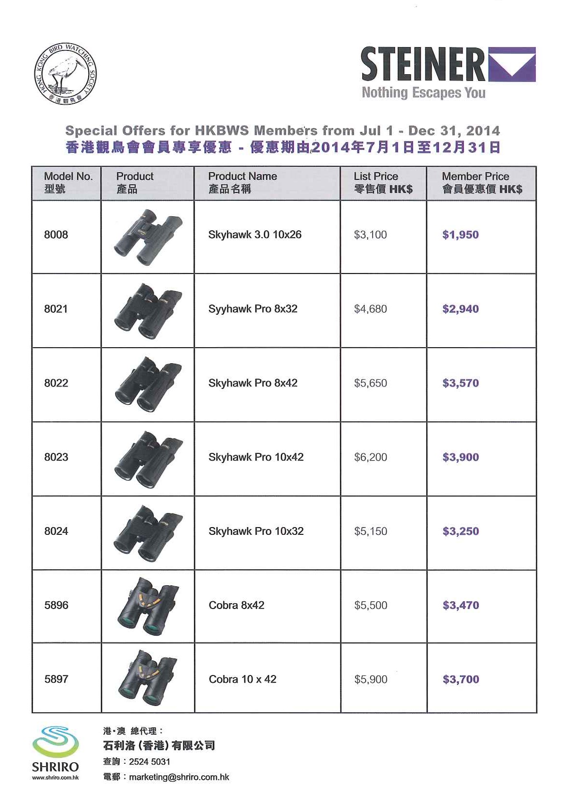 Author: HKBWS Bonnie    Time: 30/06/2014 11:32     Subject: Steiner望遠鏡優惠 Special Offer of Steiner Binoculars 2014/07-2014/12