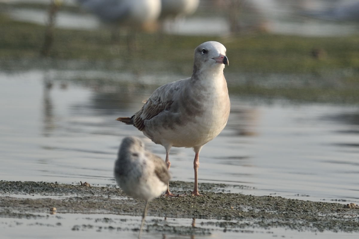The bird labelled as Little Stint is a Red-necked Stint just starting to develop breeding plumage. You can see some of the red starting to show on the sides of the neck and on the throat.