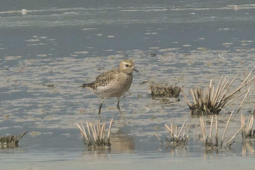 Noted the bird with chunky body and head, larger size compare with Pacific Golden Plover in the 2nd photo, proportionately short legs (PISTON & HEINL 2001)