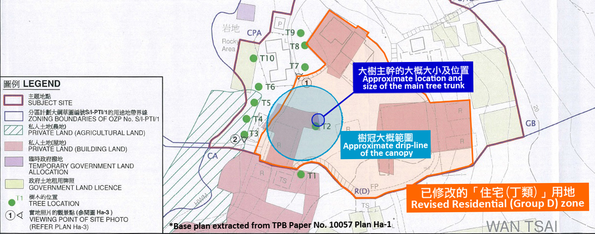 蒲台群島分區大綱草圖〔草圖〕經已修改,大部分的成熟大樹已經沒有被包括在「住宅(丁類)」用地之內。可是,草圖仍未能保護區內最大的樹木。