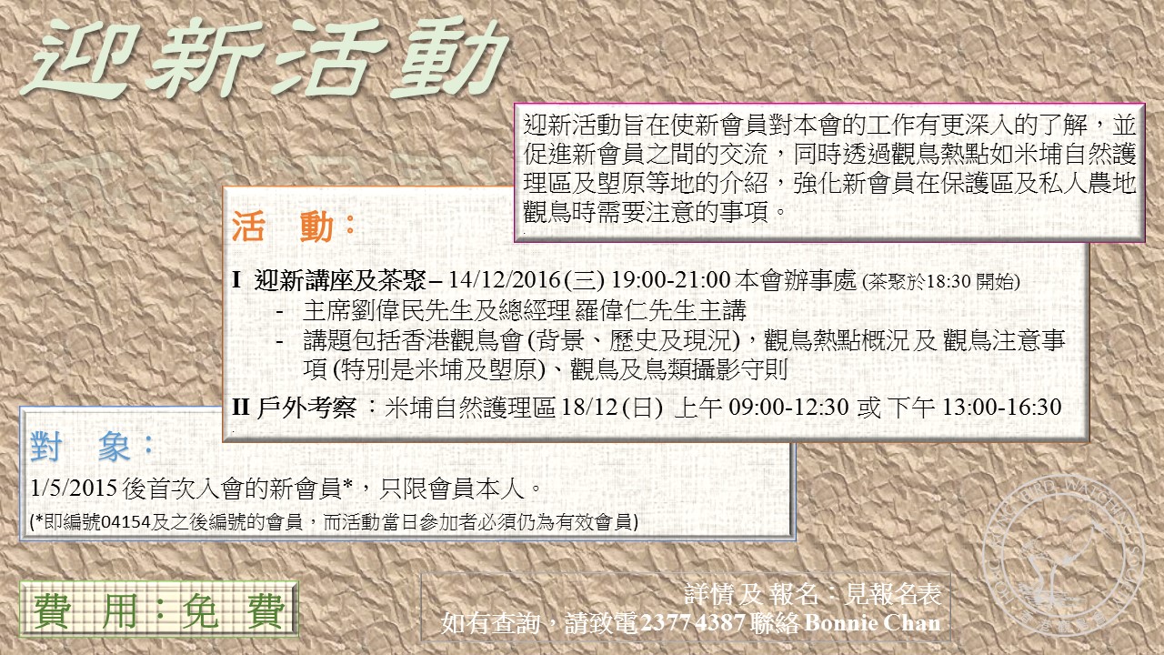 香港觀鳥會 迎新活動