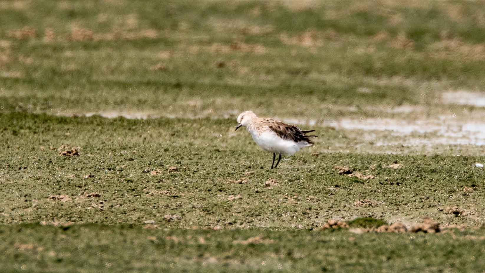 I agree. These are different birds. The second is clearly a Red-necked Stint with an odd-looking bill. I am not sure what the first is. It may be a Spoon-billed Sandpiper but I personally think it is ...