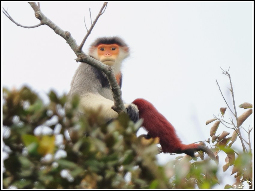 The greatest attraction of Song Tra NR is undoubtedly the 5-coloured Red-shanked Douc, generally described as the most beautiful one among all primates. It is listed as Critically Endangered in the IUCN list.