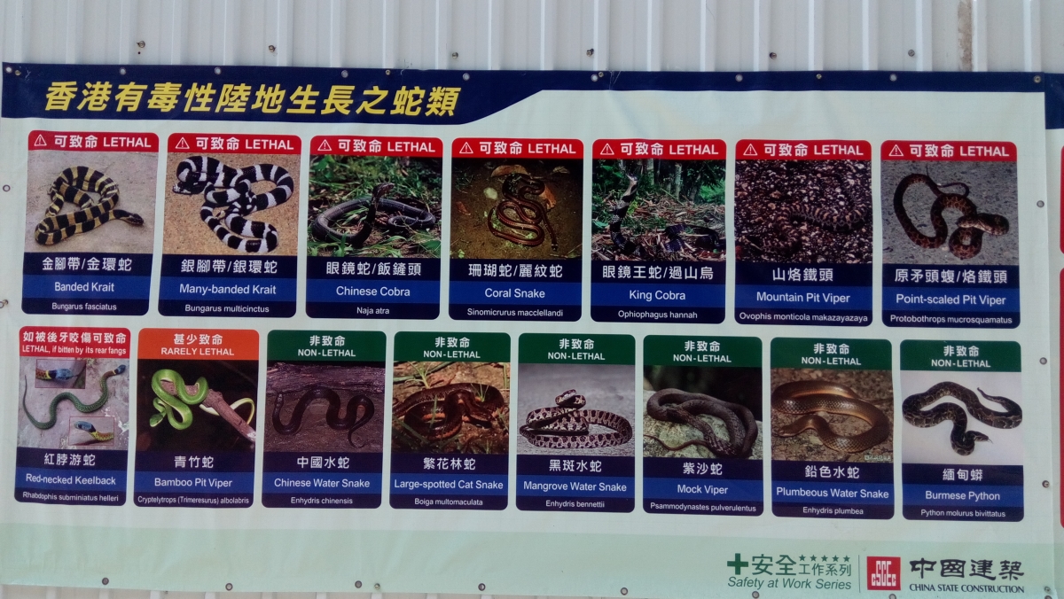 在草堆裏也見過,似棱蛇之類,正享用大餐,所以唔阻它發大。地盤會貼出警告,方便辨認: