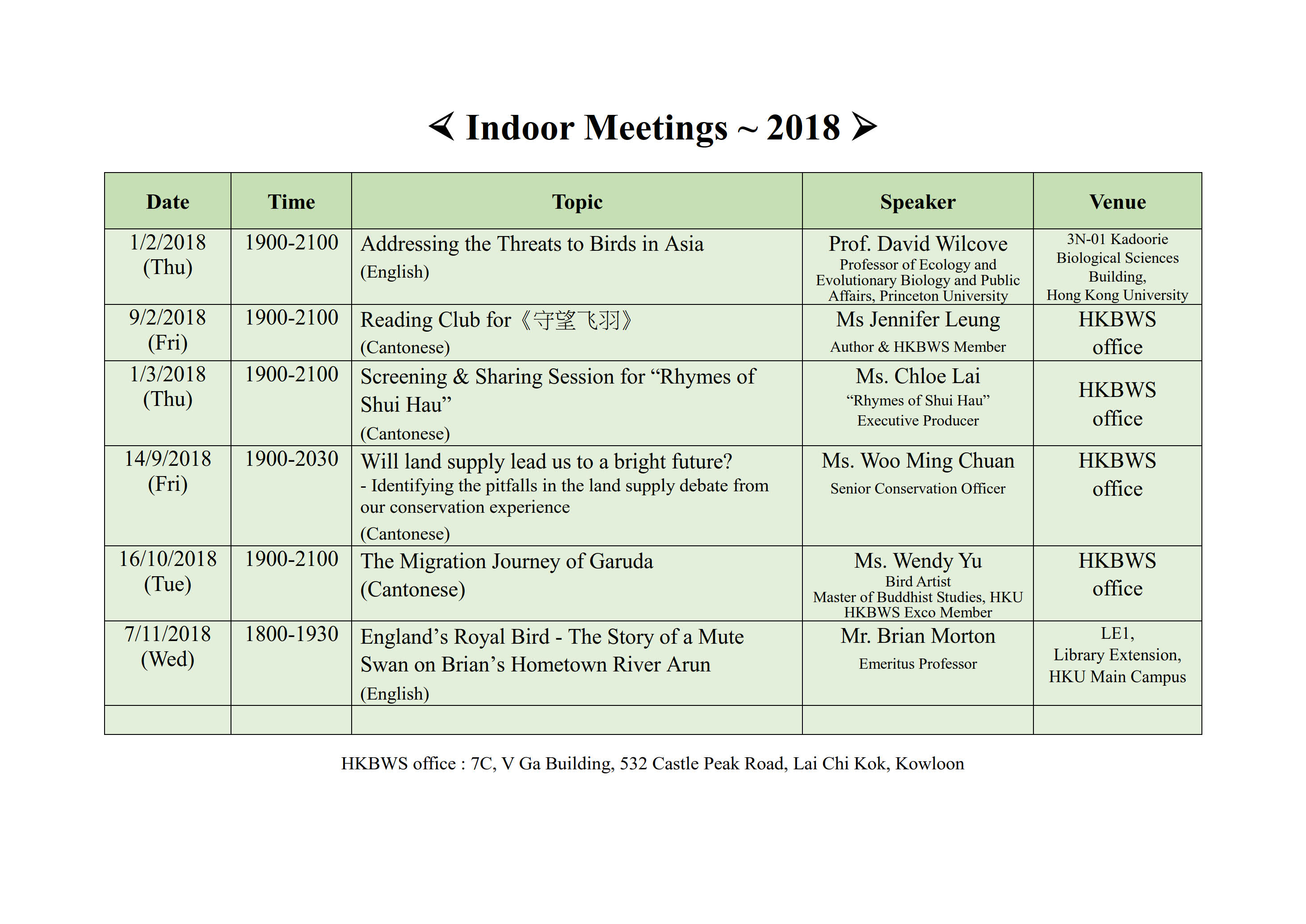 2018 室內講座Indoor Meeting