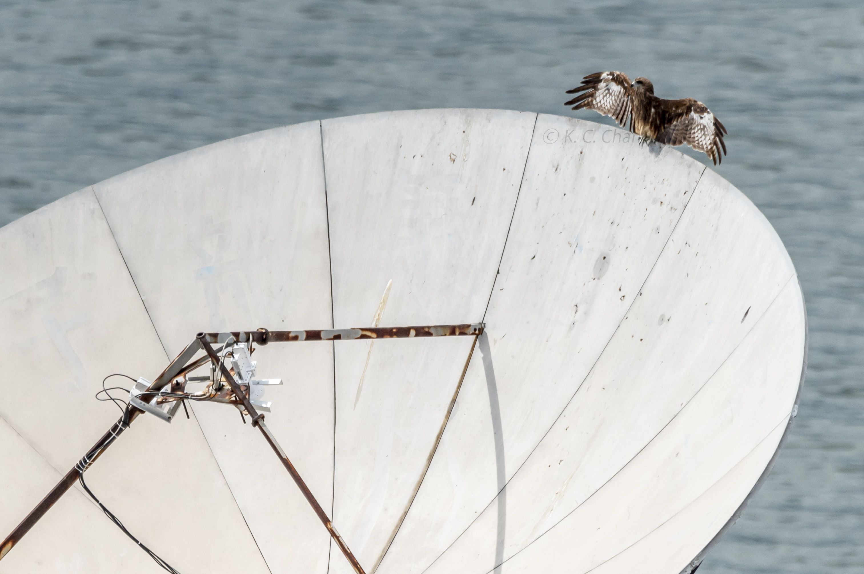Black Kites playing happily on a satellite dish.