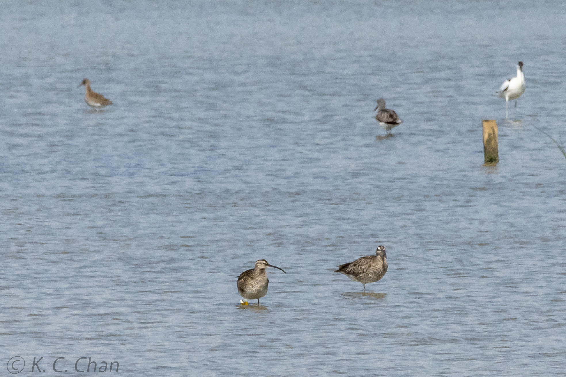 Whimbrel X3 has been wintering at Mai Po, reported in Oct, Nov, Feb and Mar.