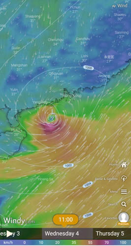 Winds blew from the southeast, force 5. I watched from 11h45 until 17h45. At 16h25 the Hong Kong Observatory issued storm signal 3: it gave me good hope that the next day would see strong southerly to easterly winds, but the signal was withdrawn at 04h20 in the morning of 4 August. But let’s first look at the 3rd, which was not a bad day to start the month.